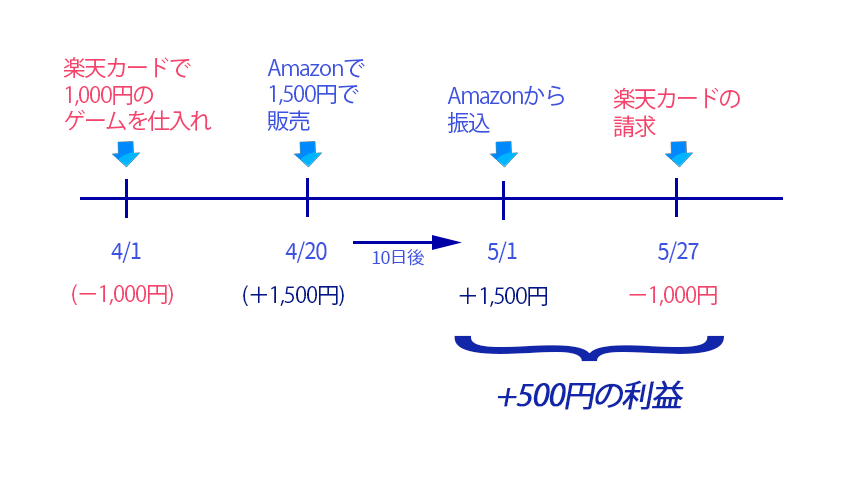 クレジットカードで買った商品を、支払い日までの間に販売して