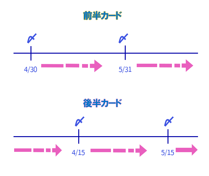 例えば楽天カードの場合、月末締め翌月27日引き落としのカードなので、