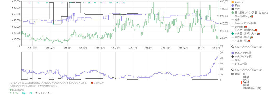 これがAmazonのページに表示されるKeepaのグラフ画面になります
