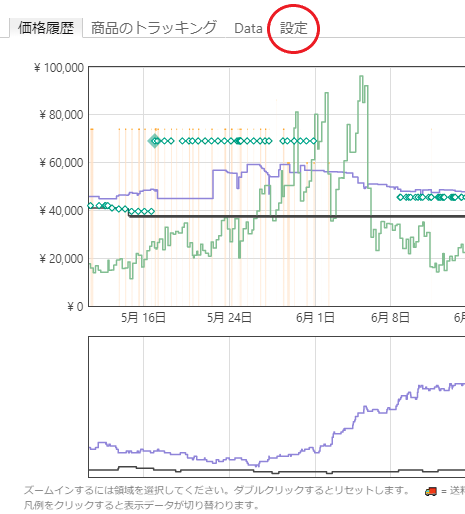 過去の価格やランキングの履歴を表示するツールです