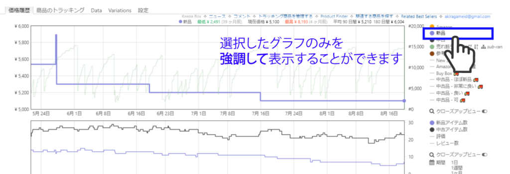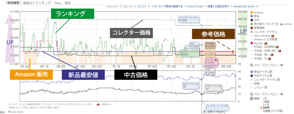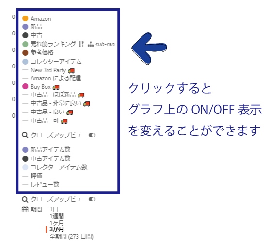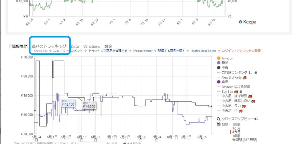 Amazonの商品ページに表示されるKeepaグラフの項目名から