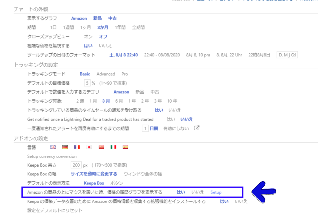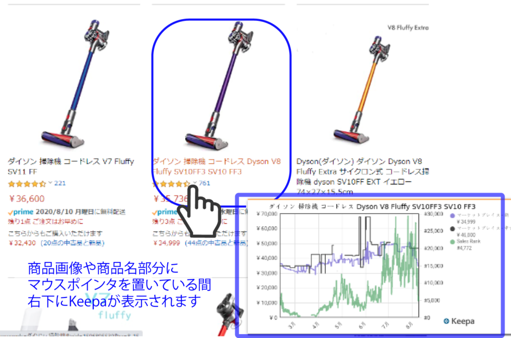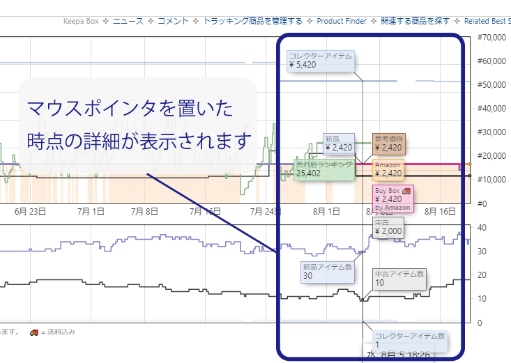 商品ページに表示されているkeepaのグラフ上部に