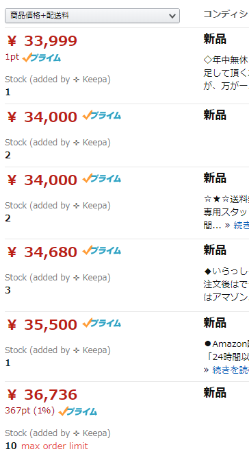 keepaを入れてからAmazon の出品者一覧ページを表示すると