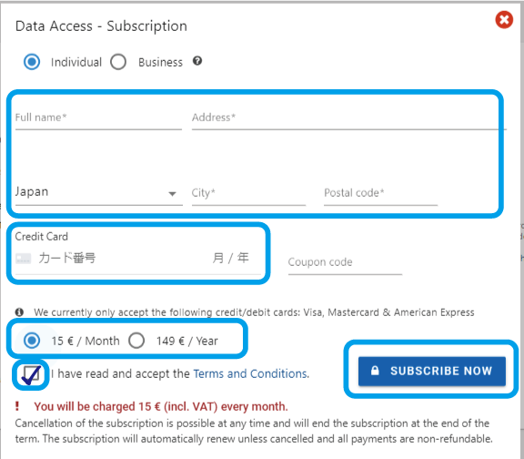 右下の[SUBSCRIBE NOW]をクリックしましょう
