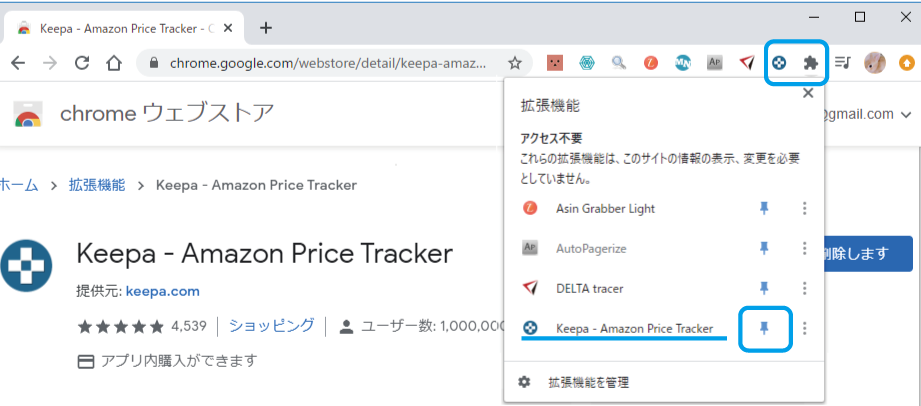 KeepaはGoogle chromeの拡張機能なので