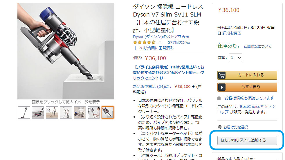 Amazon のほしい物リストに入っている商品情報を